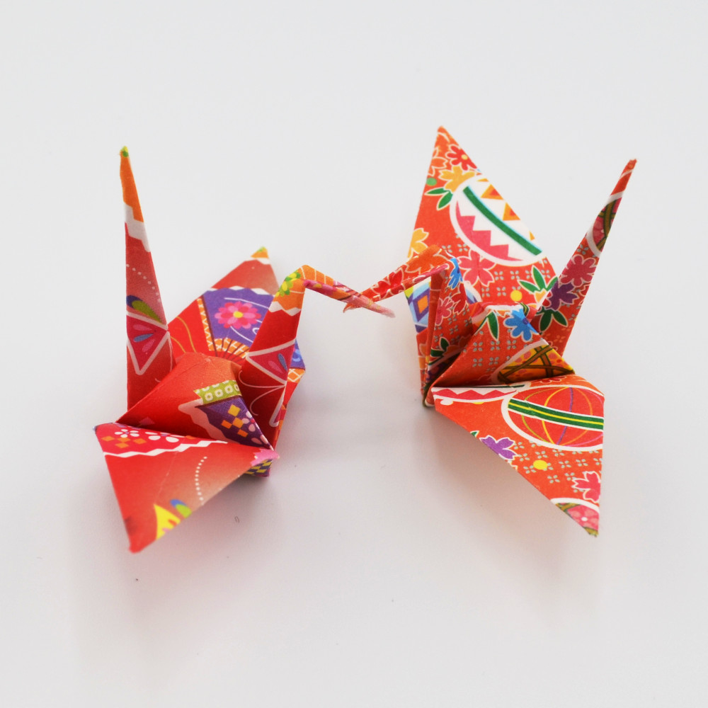 This Origami Crane is modeled after a crane bird. The crane is a symbol of longevity and happiness in Japan.