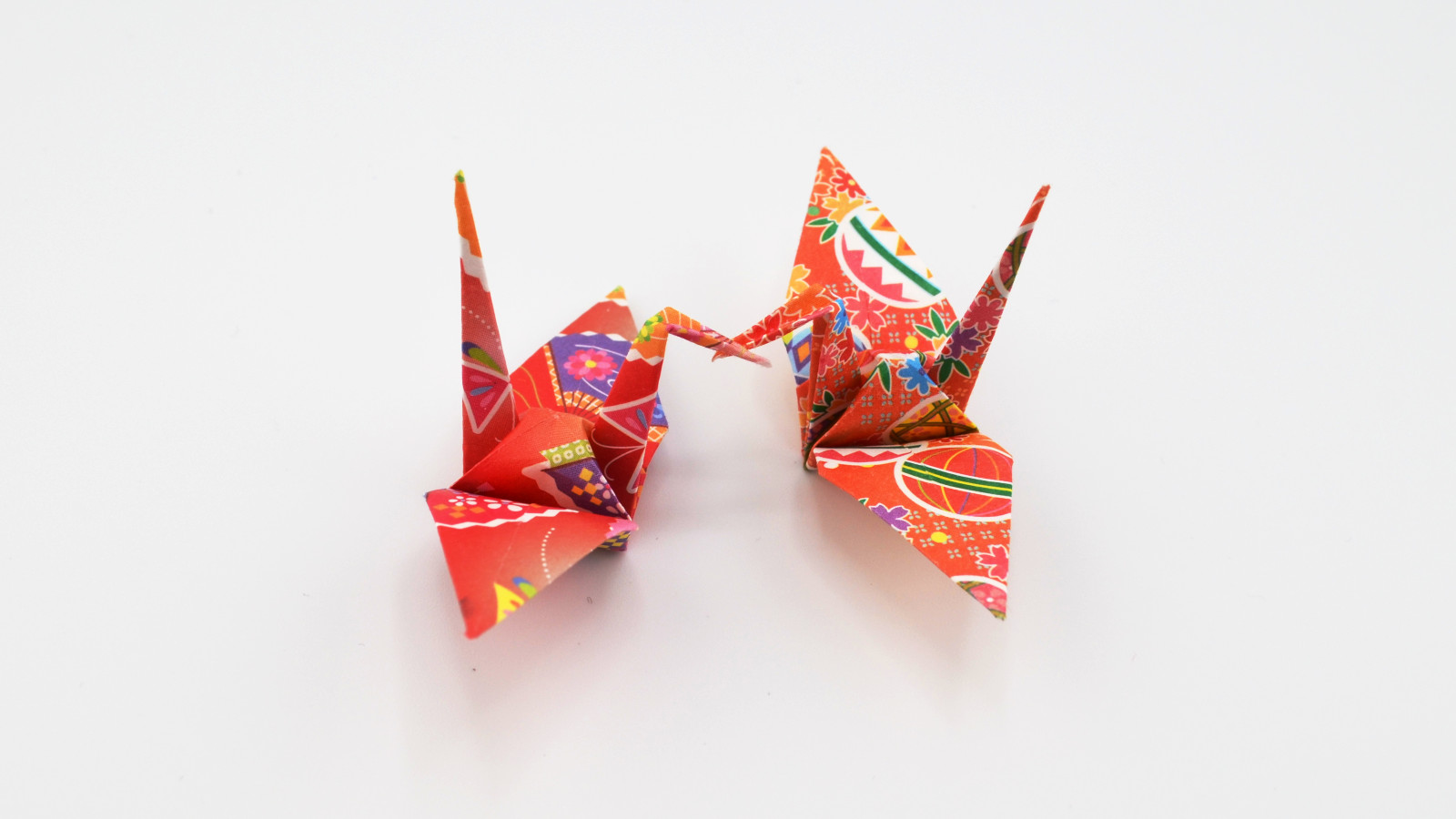 This Origami Crane is modeled after a crane bird. The crane is a symbol of longevity and happiness in Japan.