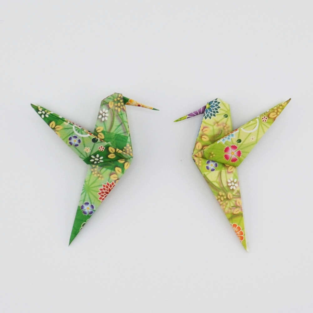 This Origami Hummingbird is modeled after a flying hummingbird. it can be used for party favor, hanging ornament, and more.