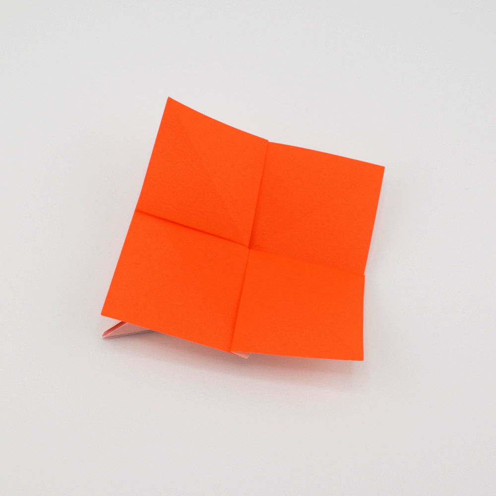 Flip it over. Open the pouch-like area and fold it flat, pressing it down.