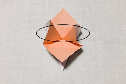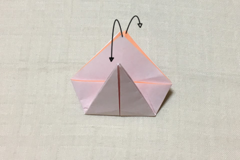 Open the pouch-like area marked with the arrow and fold it flat, pressing it down.