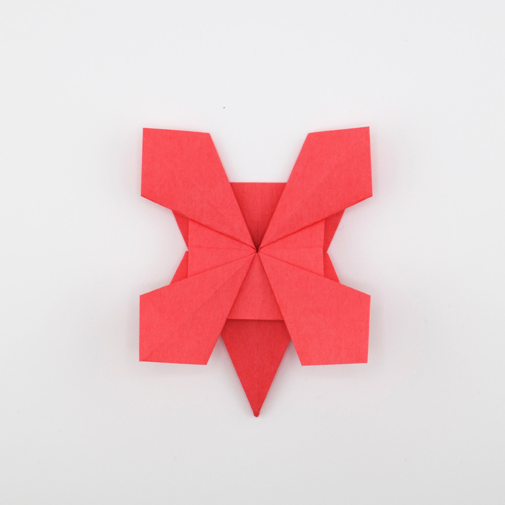 This Origami Yaguruma-leaf is modeled after a Rodger’s bronze leaf. it can be used for wall decoration, party favor, and more.