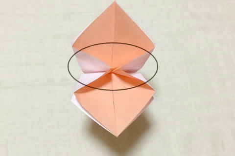 This is a top view. Fold the circled area, pressing it flat.
